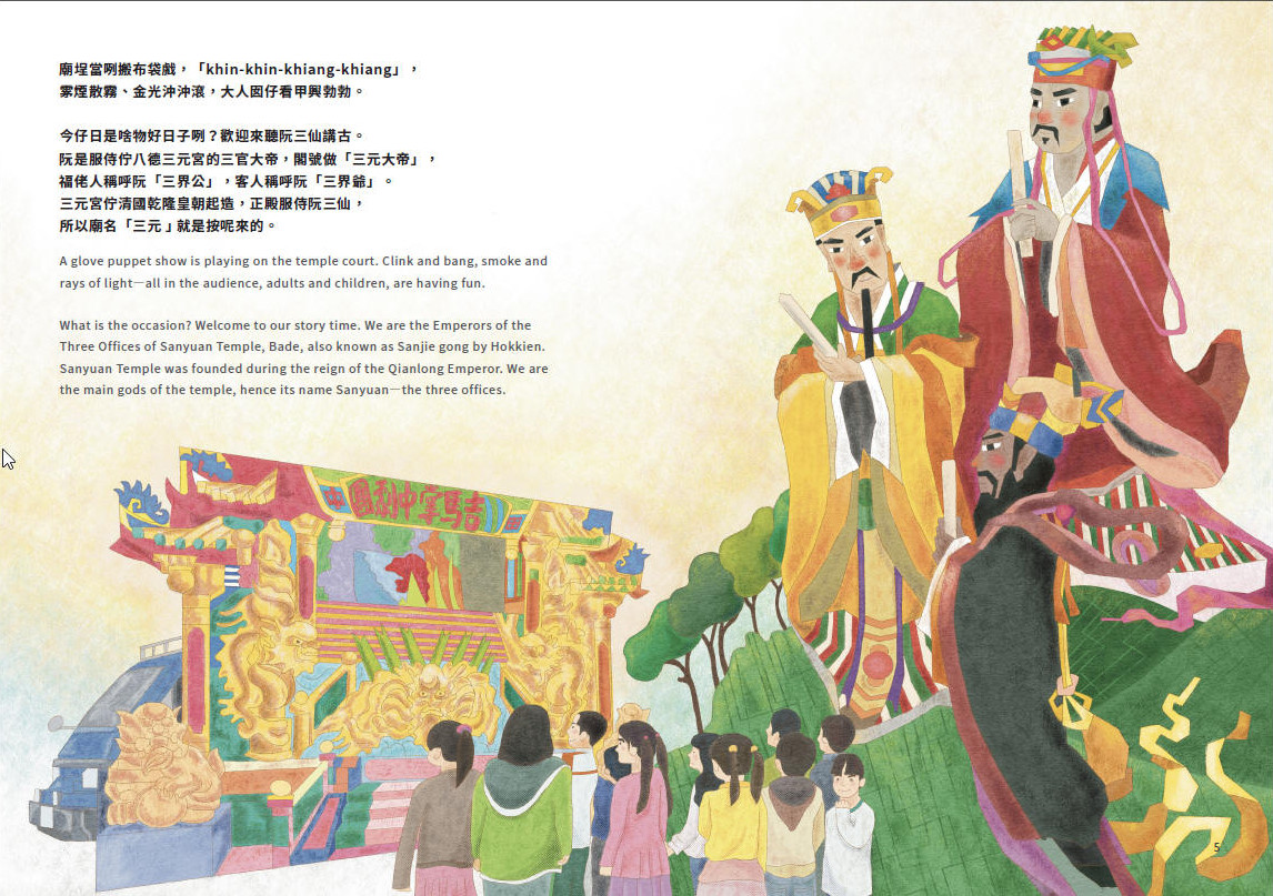 What is the occasion? Welcome to our story time. We are the Emperors of the Three Offices of Sanyuan Temple, Bade, also known as Sanjie gong by Hokkien. Sanyuan Temple was founded during the reign of the Qianlong Emperor. We are the main gods of the temple, hence its name Sanyuan—the three offices.
