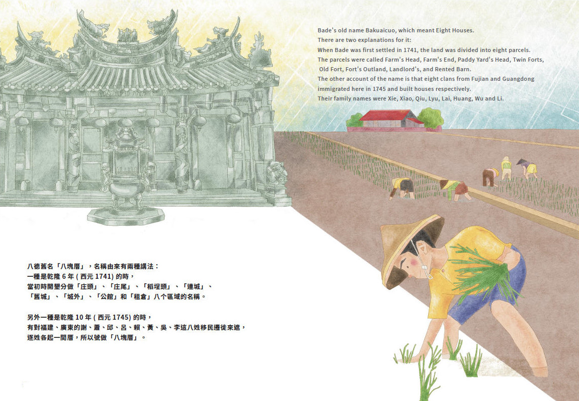The other account of the name is that eight clans from Fujian and Guangdong immigrated here in 1745 and built houses respectively.