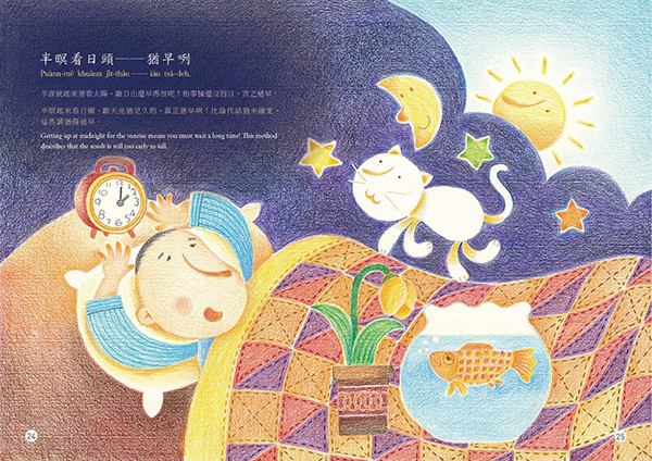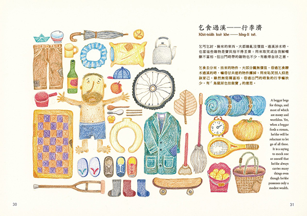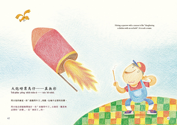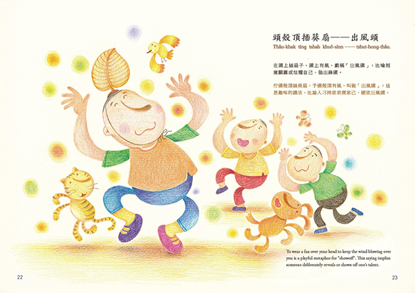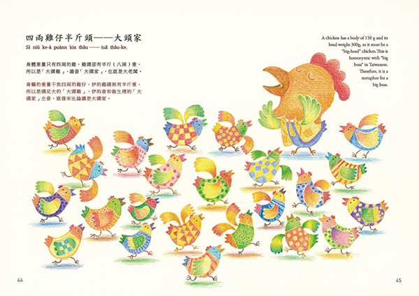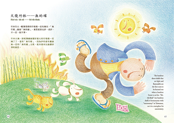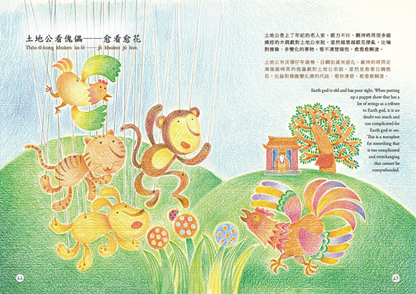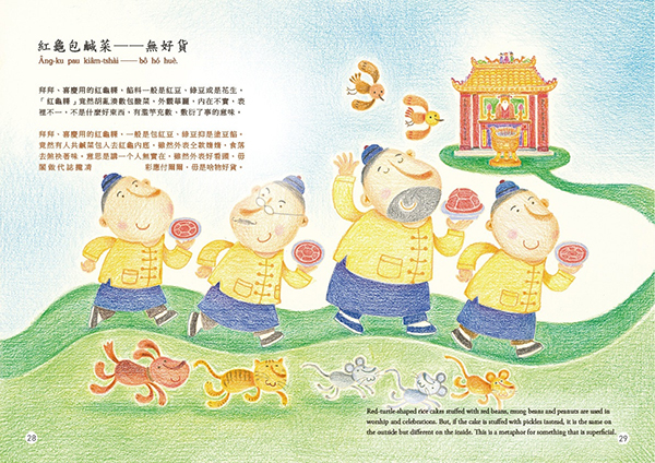 “Gia̍t-khiat-á-uē” (wisecracking) is a type of Taiwanese two-part allegorical sayings that are filled with ingenuity of homonyms and witty words. It is full of fun like riddles that embody the language of folk culture and the humor refined in life. “Kóng‑tshiò‑khe” (joking) means being funny and cracking jokes, which is one of the features of “gia̍t-khiat-á-uē”. In “Wisecracking and Joking”, the humorous life wisdom of Taiwanese is manifested with the two-part allegorical sayings.